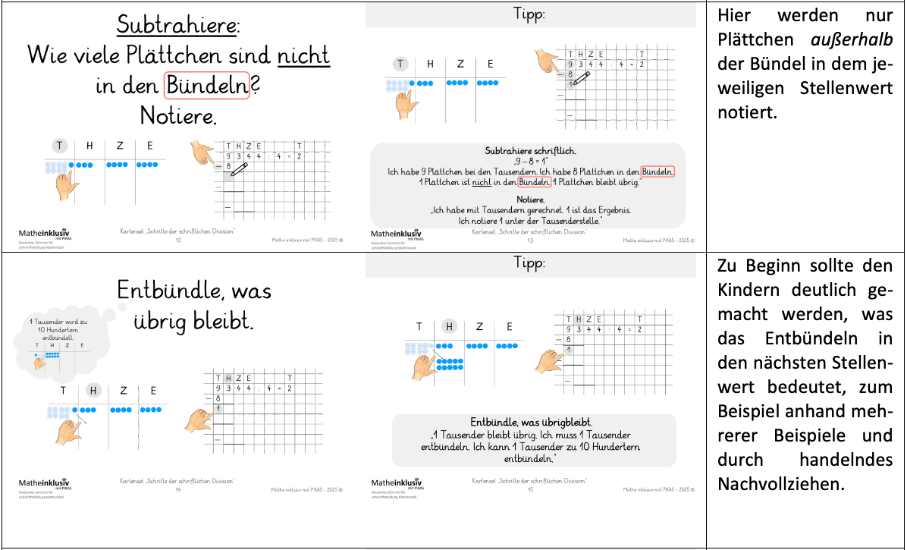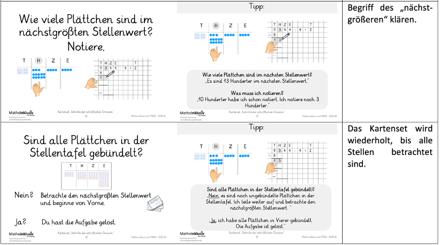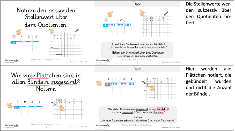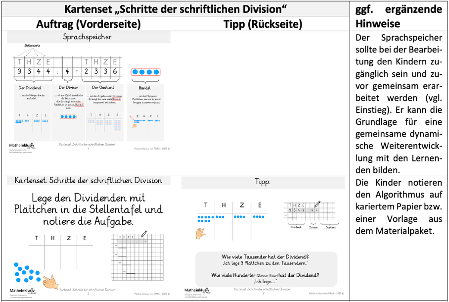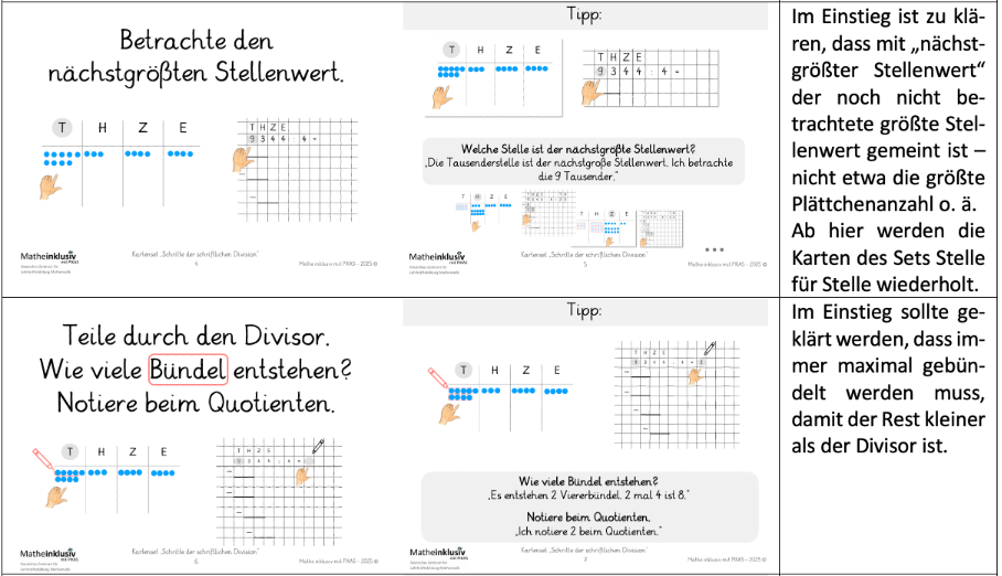 Kartenset zu „Schritte der schriftlichen Division“ und ergänzende Hinweise