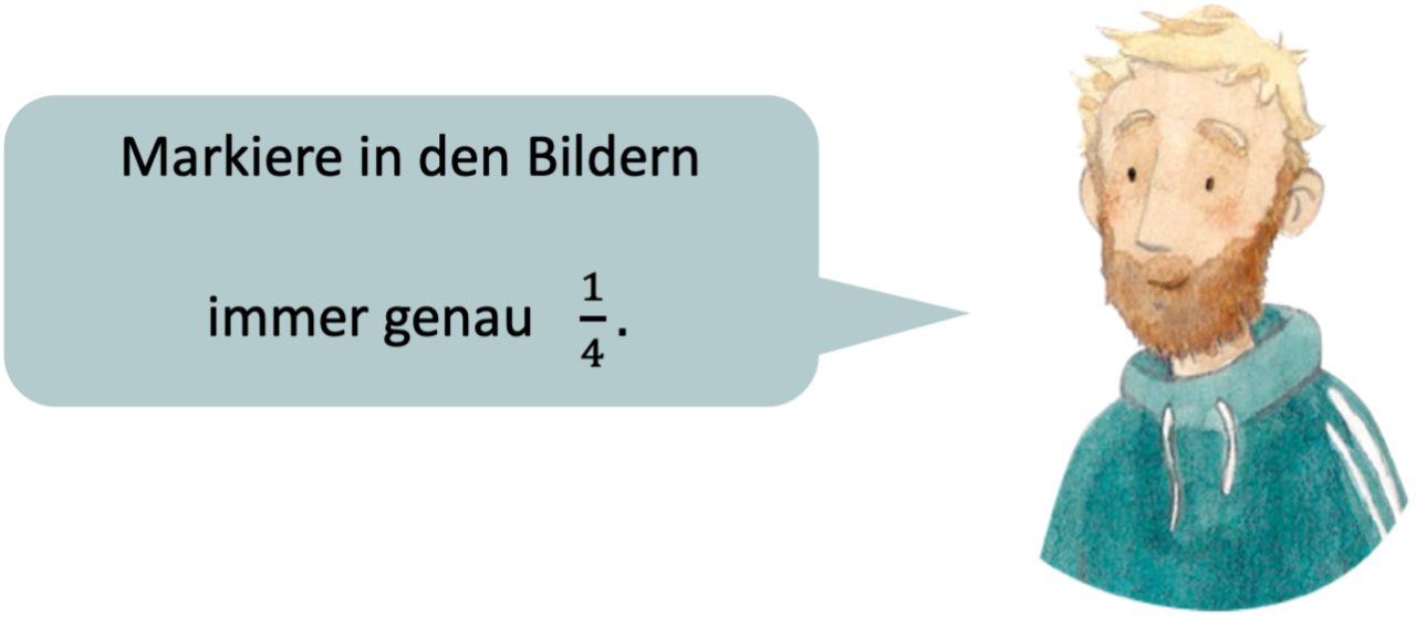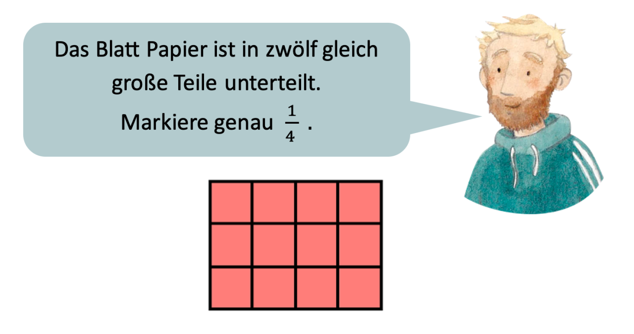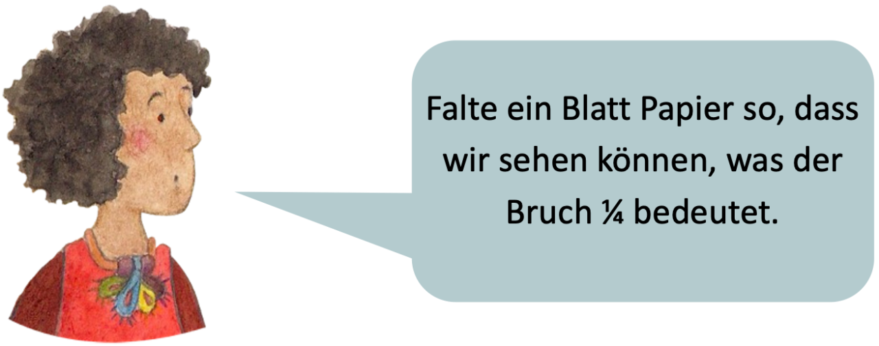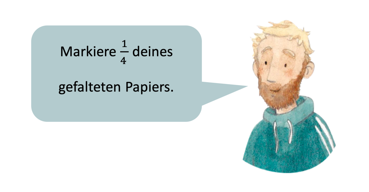 Die Abbildung zeigt einen Lehrer mit einer Sprechblase. Er sagt: Markiere immer genau ein Viertel deines gefalteten Papiers.
